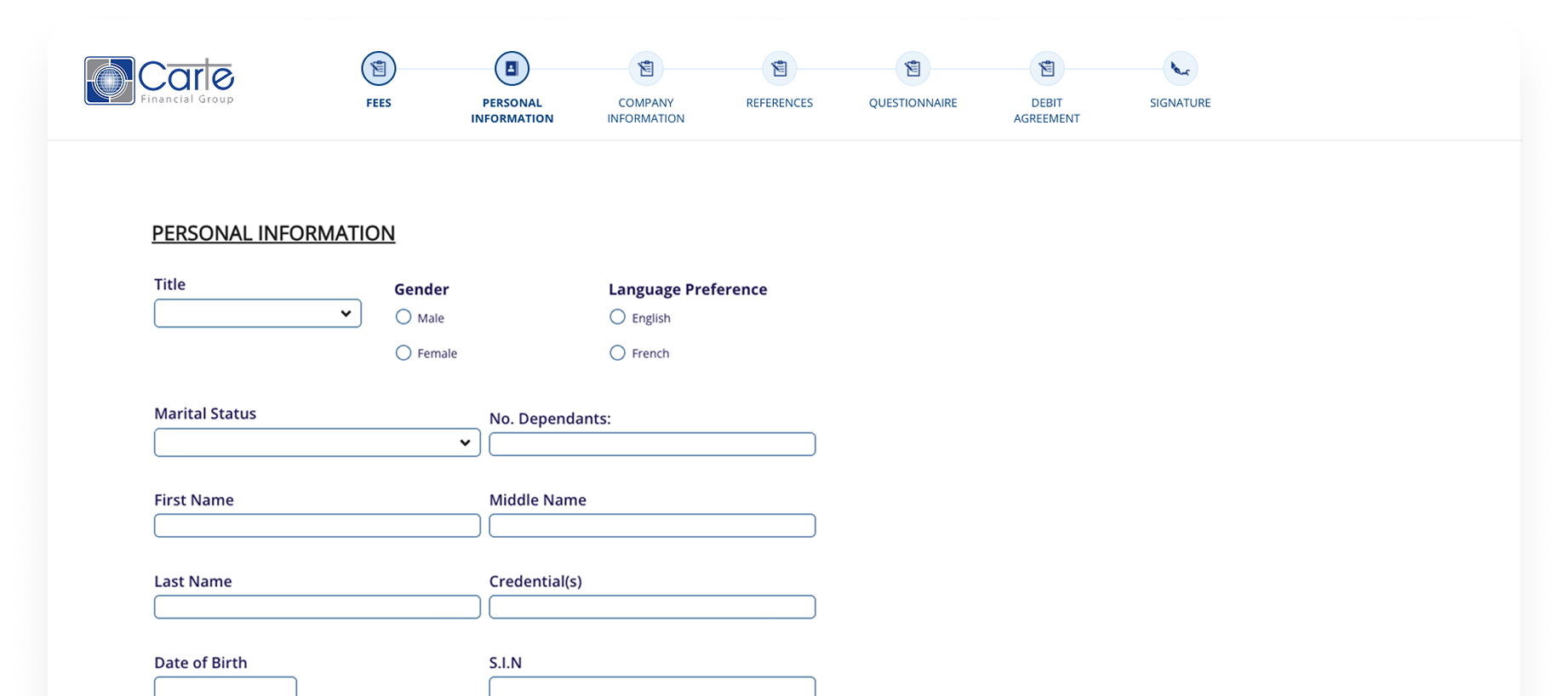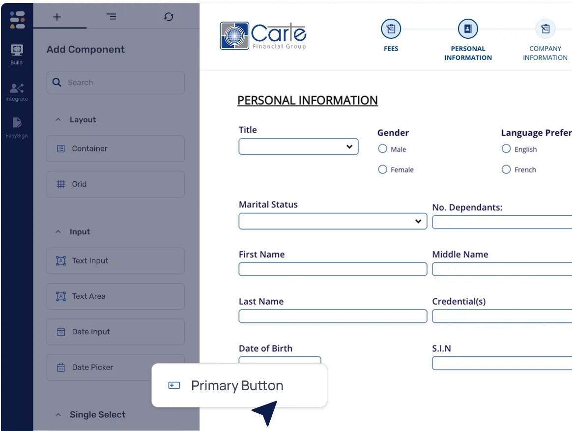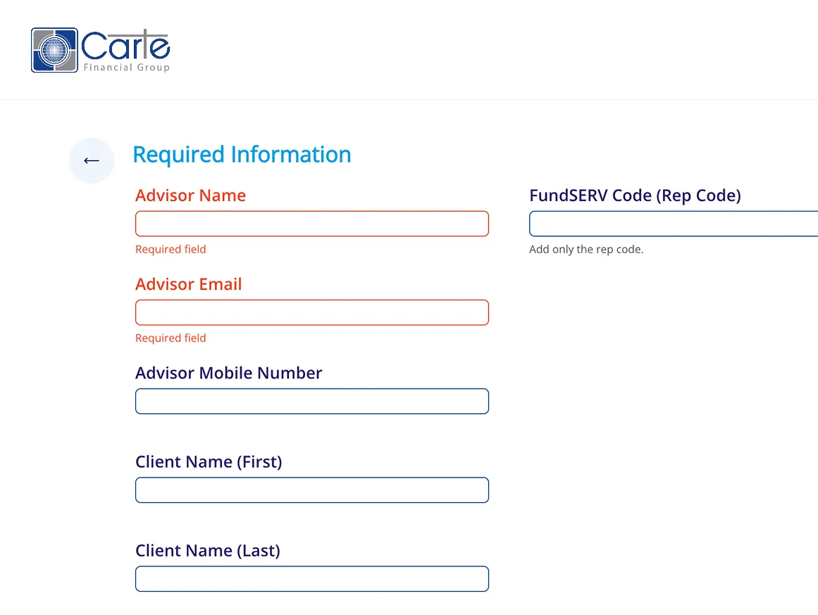 By replacing static forms with dynamic forms, Carte guides customers at every step.